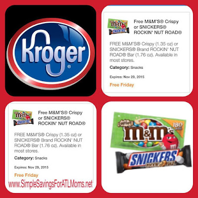 November 13, 2015 by QuidaDid you download your Kroger Freebie? FREE M&Ms Crispy or Snickers Rockin’ Nut Road – Kroger Friday Freebie! Pick up in store before 11/29/15! Go download today only to your card or Kroger app!!
