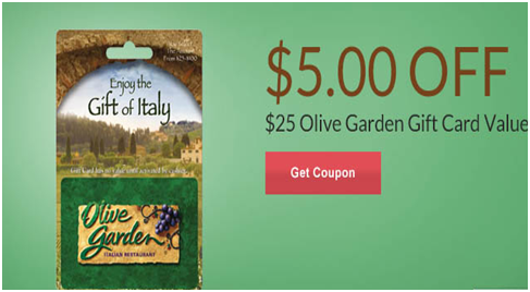 Print now a Save $5 Off $25 Olive Garden Gift Card Store Coupon