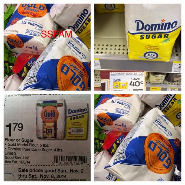 November 3, 2014 by Quida$1.39 Domino Sugar ~ Walgreen’s Don’t forget your Gold Medal flour or Domino sugar that is on sale in Walgreens this week if you want it! Find the Save $0.40/1 coupon in your RP 9/7 or Save $0.75/2 on Redplum.com or $1/2 on Smartsource.com insert!