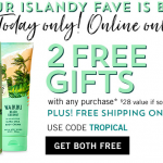 Today only, score 2 Free gifts with any purchase online only! Spend $40 and get free shipping. Use code: TROPICAL at checkout for the savings to apply. Shop through Ebates […]