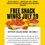 Chicken wing lovers, be sure and head to your local Buffalo Wild Wings for a free snack wings when you purchase a small, medium or large traditional or boneless […]